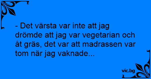 - Det värsta var inte att jag drömde att jag var vegetarian och åt gräs, det var att madrassen var tom när jag vaknade...