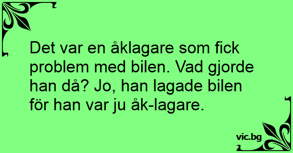 Det var en åklagare som fick problem med bilen. Vad gjorde han då? Jo, han lagade bilen för han var ju åk-lagare.