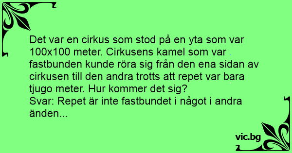 Det var en cirkus som stod på en yta som var 100x100 meter. Cirkusens kamel som var fastbunden kunde röra sig från den ena sidan av cirkusen till den andra trotts att repet var bara tjugo meter. Hur kommer det sig?