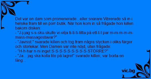 Det var en dam som promenerade.. eller snarare Vibrerade så in i hеlsiке fram till en porr-butik. När hon kom in så frågade hon killen bakom disken: