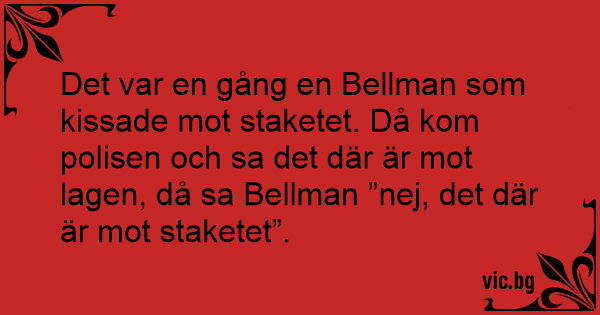 Det var en gång en Bellman som kissade mot staketet. Då kom polisen och sa det där är mot lagen, då sa Bellman ”nej, det där är mot staketet”.