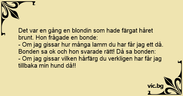 Det var en gång en blondin som hade färgat håret brunt. Hon frågade en bonde: