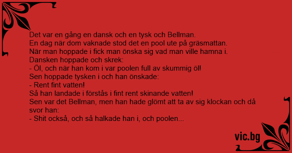 Sen var det Bellman, men han hade glömt att ta av sig klockan och då svor han: