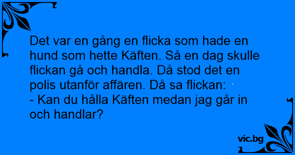 Det var en gång en flicka som hade en hund som hette Käften. Så en dag skulle flickan gå och handla. Då stod det en polis utanför affären. Då sa flickan: