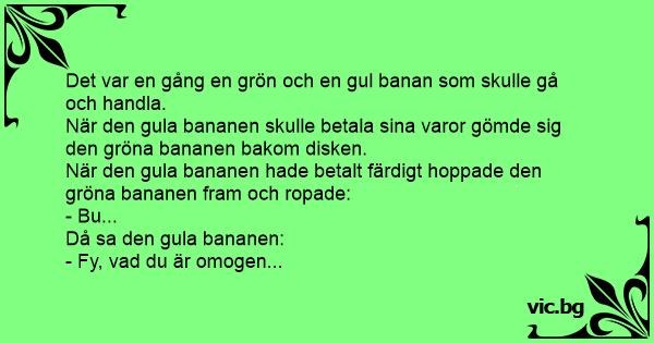 När den gula bananen hade betalt färdigt hoppade den gröna bananen fram och ropade: