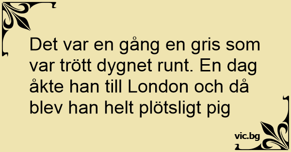 Det var en gång en gris som var trött dygnet runt. En dag åkte han till London och då blev han helt plötsligt pig