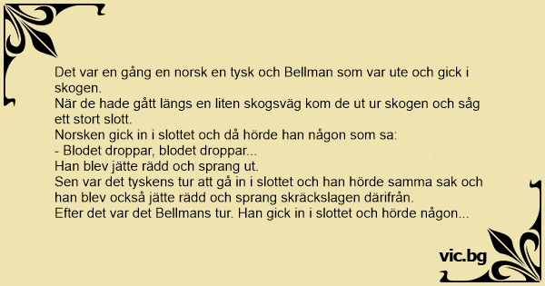 Det var en gång en norsk en tysk och Bellman som var ute och gick i skogen.