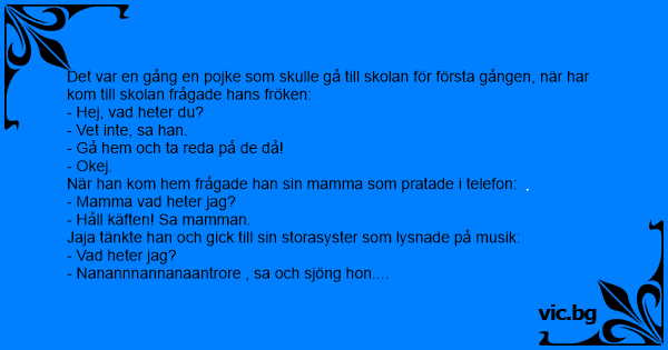 Det var en gång en pojke som skulle gå till skolan för första gången, när har kom till skolan frågade hans fröken: