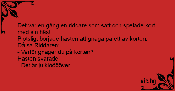Det var en gång en riddare som satt och spelade kort med sin häst.