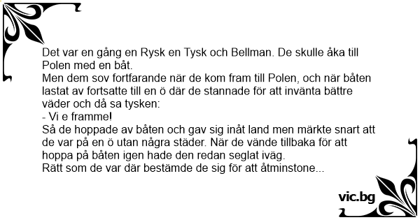 Det var en gång en Rysk en Tysk och Bellman. De skulle åka till Polen med en båt.