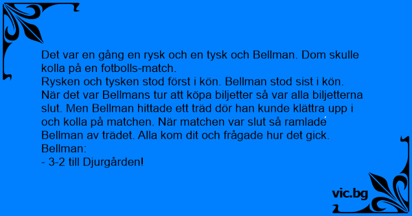 Det var en gång en rysk och en tysk och Bellman. Dom skulle kolla på en fotbolls-match.