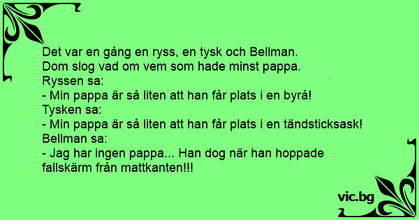 - Jag har ingen pappa... Han dog när han hoppade fallskärm från mattkanten!!!