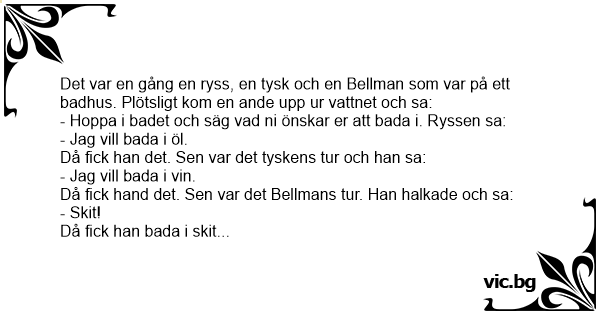Det var en gång en ryss, en tysk och en Bellman som var på ett badhus. Plötsligt kom en ande upp ur vattnet och sa: