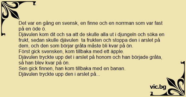 Det var en gång en svensk, en finne och en norrman som var fast på en öde ö.