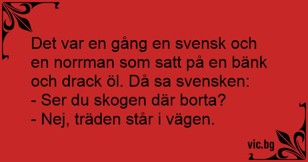 Det var en gång en svensk och en norrman som satt på en bänk och drack öl. Då sa svensken: