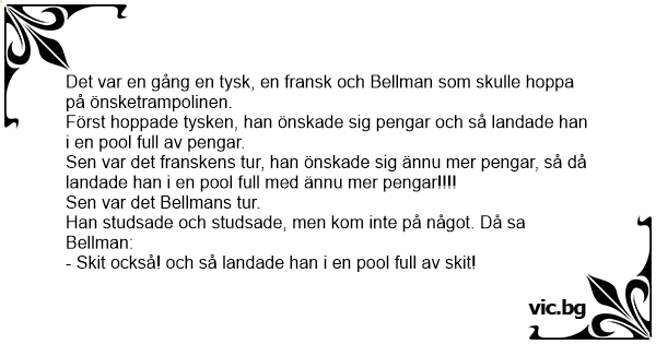 Det var en gång en tysk, en fransk och Bellman som skulle hoppa på önsketrampolinen.