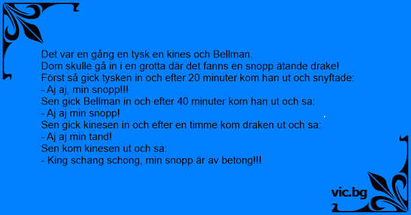 Sen gick kinesen in och efter en timme kom draken ut och sa: