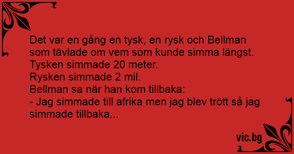 Det var en gång en tysk, en rysk och Bellman som tävlade om vem som kunde simma längst.