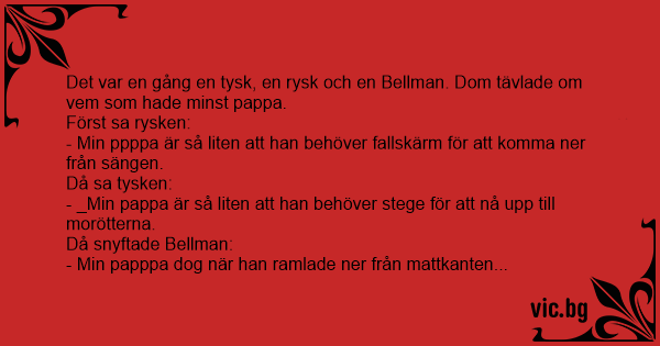 Det var en gång en tysk, en rysk och en Bellman. Dom tävlade om vem som hade minst pappa.