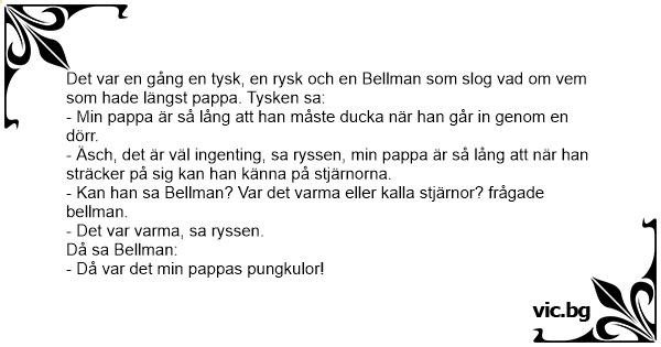 Det var en gång en tysk, en rysk och en Bellman som slog vad om vem som hade längst pappa. Tysken sa: