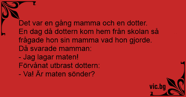 En dag då dottern kom hem från skolan så frågade hon sin mamma vad hon gjorde.