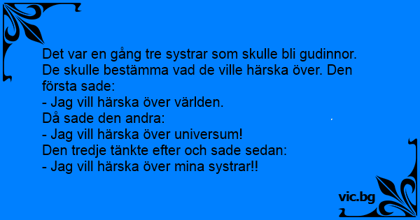 Det var en gång tre systrar som skulle bli gudinnor. De skulle bestämma vad de ville härska över. Den första sade: