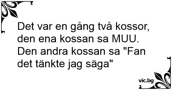 Det var en gång två kossor, den ena kossan sa MUU. Den andra kossan sa "Fаn det tänkte jag säga"