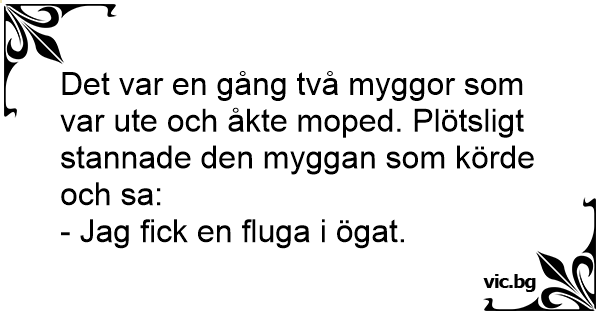 Det var en gång två myggor som var ute och åkte moped. Plötsligt stannade den myggan som körde och sa: