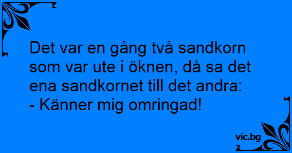 Det var en gång två sandkorn som var ute i öknen, då sa det ena sandkornet till det andra: