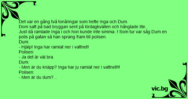 Just då ramlade Inga i och hon kunde inte simma..! Som tur var såg Dum en polis på gatan så han sprang fram till polisen.