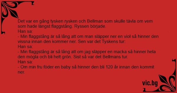 Det var en gång tysken rysken och Bellman som skulle tävla om vem som hade längst flaggstång. Ryssen började.
