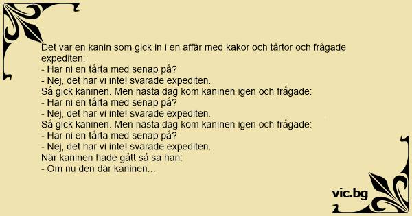 Det var en kanin som gick in i en affär med kakor och tårtor och frågade expediten: