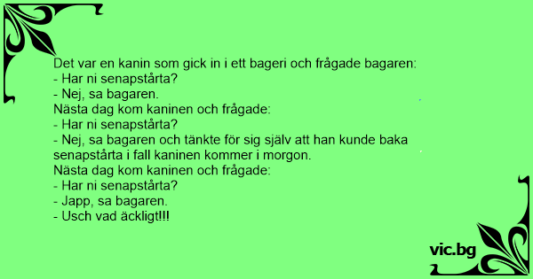 - Nej, sa bagaren och tänkte för sig själv att han kunde baka senapstårta i fall kaninen kommer i morgon.