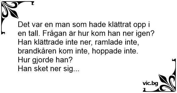 Det var en man som hade klättrat opp i en tall. Frågan är hur kom han ner igen?