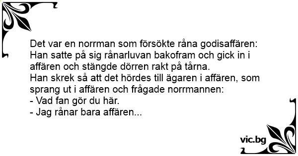 Det var en norrman som försökte råna godisaffären: Han satte på sig rånarluvan bakofram och gick in i affären och stängde dörren rakt på tårna.
