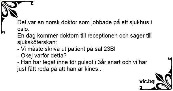 En dag kommer doktorn till receptionen och säger till sjuksköterskan: