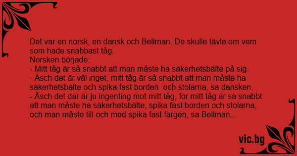 Det var en norsk, en dansk och Bellman. De skulle tävla om vem som hade snabbast tåg.