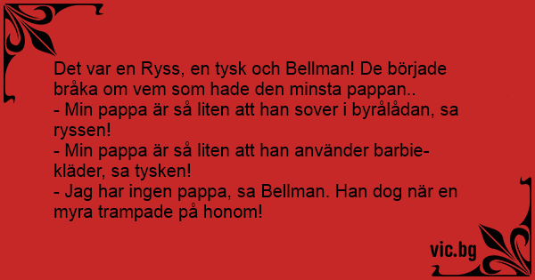 Det var en Ryss, en tysk och Bellman! De började bråka om vem som hade den minsta pappan..