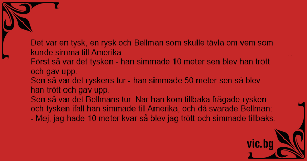 Det var en tysk, en rysk och Bellman som skulle tävla om vem som kunde simma till Amerika.