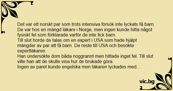 Han undersökte dom båda noggrannt men hittade inget fel. Till sluт ville han att de skulle visa hur de brukade göra.