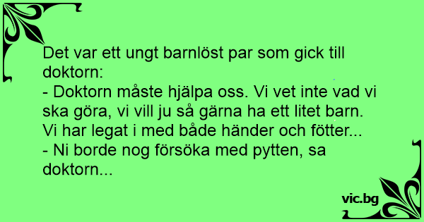 - Doktorn måste hjälpa oss. Vi vet inte vad vi ska göra, vi vill ju så gärna ha ett litet barn. Vi har legat i med både händer och fötter...