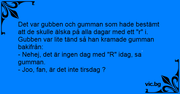 Det var gubben och gumman som hade bestämt att de skulle älska på alla dagar med ett "r" i.