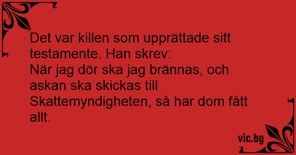 När jag dör ska jag brännas, och askan ska skickas till Skattemyndigheten, så har dom fått allt.