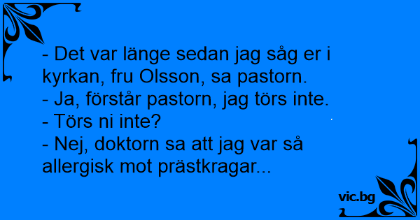 - Det var länge sedan jag såg er i kyrkan, fru Olsson, sa pastorn.