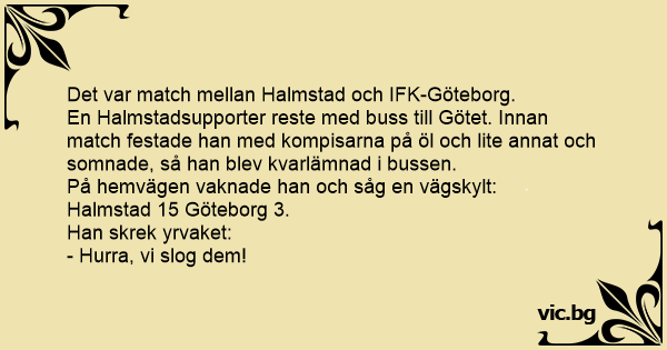 En Halmstadsupporter reste med buss till Götet. Innan match festade han med kompisarna på öl och lite annat och somnade, så han blev kvarlämnad i bussen.