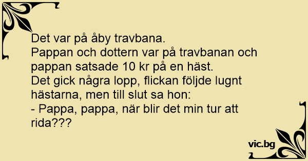 Pappan och dottern var på travbanan och pappan satsade 10 kr på en häst.