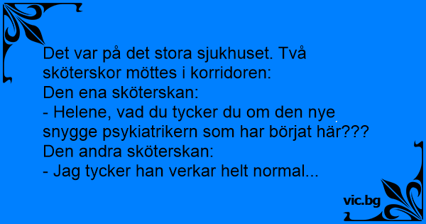 - Helene, vad du tycker du om den nye snygge psykiatrikern som har börjat här???