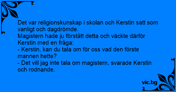 Det var religionskunskap i skolan och Kerstin satt som vanligt och dagdrömde.