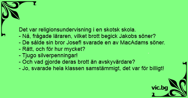 - Nå, frågade läraren, vilket brott begick Jakobs söner?