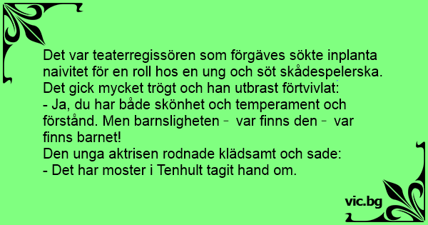 Det var teaterregissören som förgäves sökte inplanta naivitet för en roll hos en ung och söt skådespelerska.